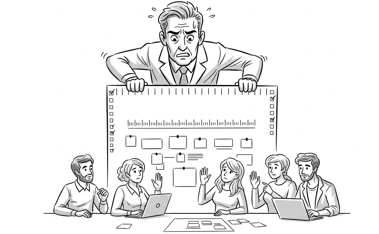 You’ll notice it when they keep telling the team how to do the work instead of aligning on what outcomes are needed. They sometimes even override priorities, interrupt sprints, and assign work directly to individuals. They also sometimes hold status meetings for compliance checks.