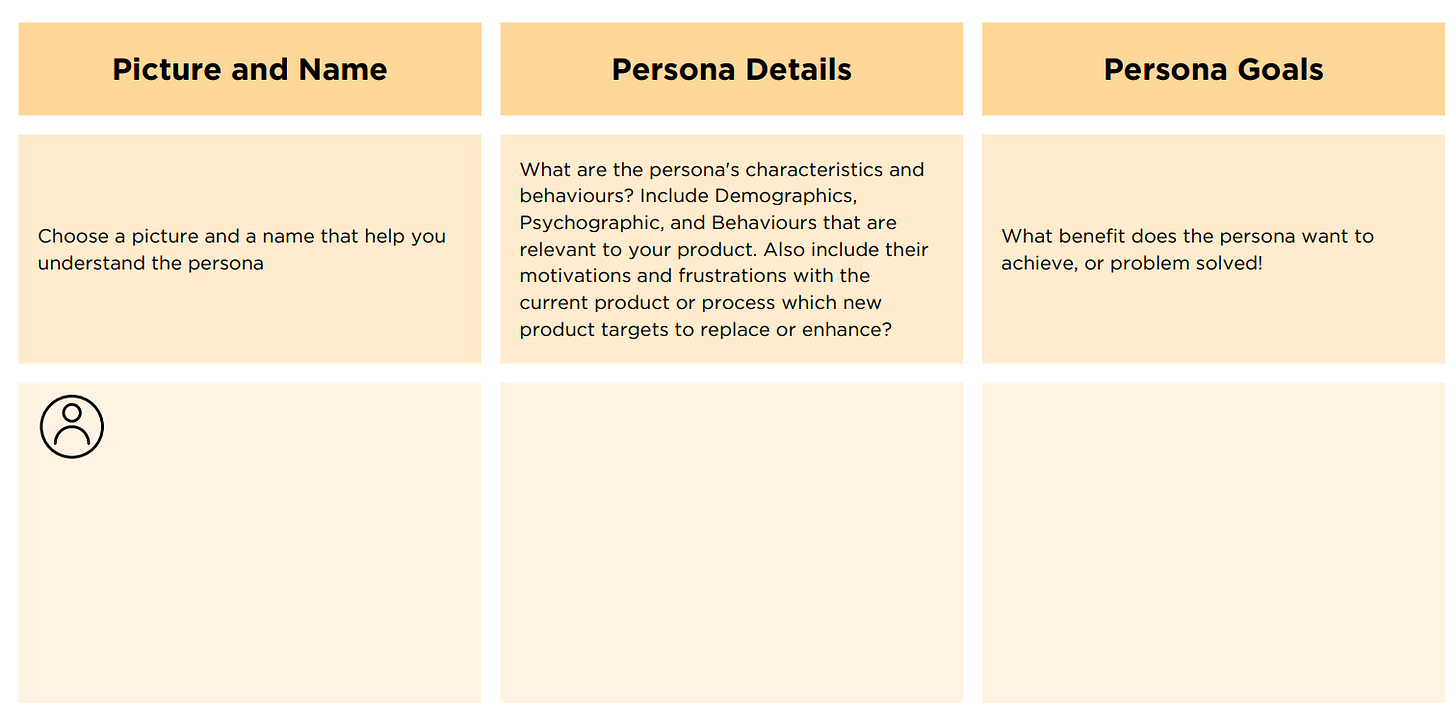 Persona = [Role] + [Key Behavior] + [Pain Point] Here’s a simple template to help you guide the conversation in those interviews: