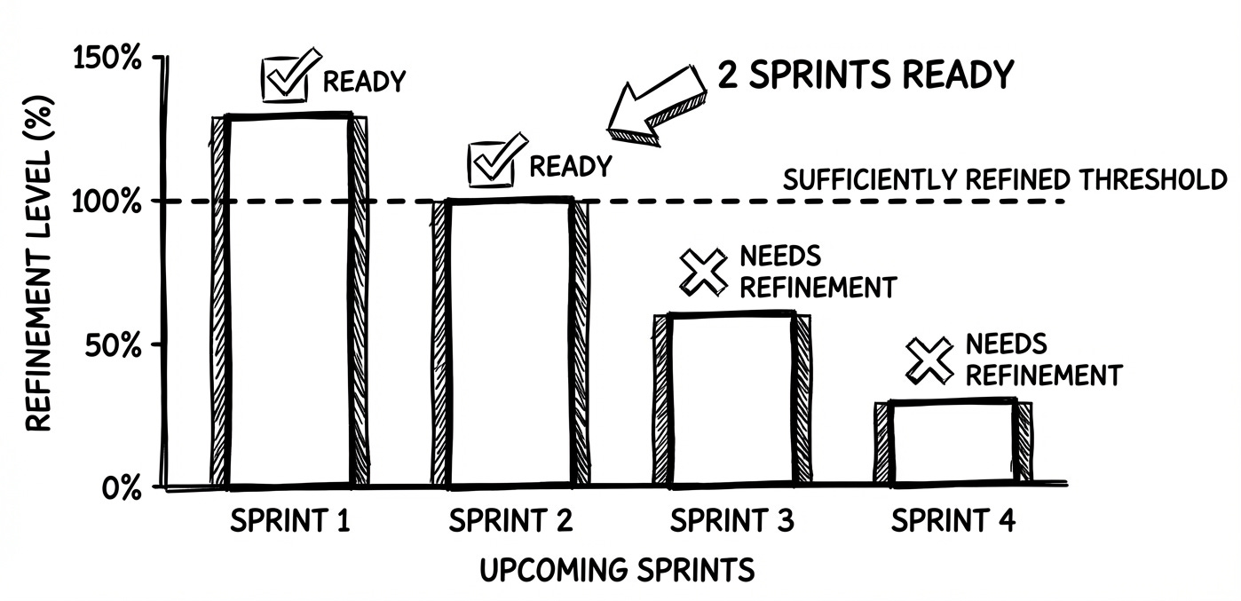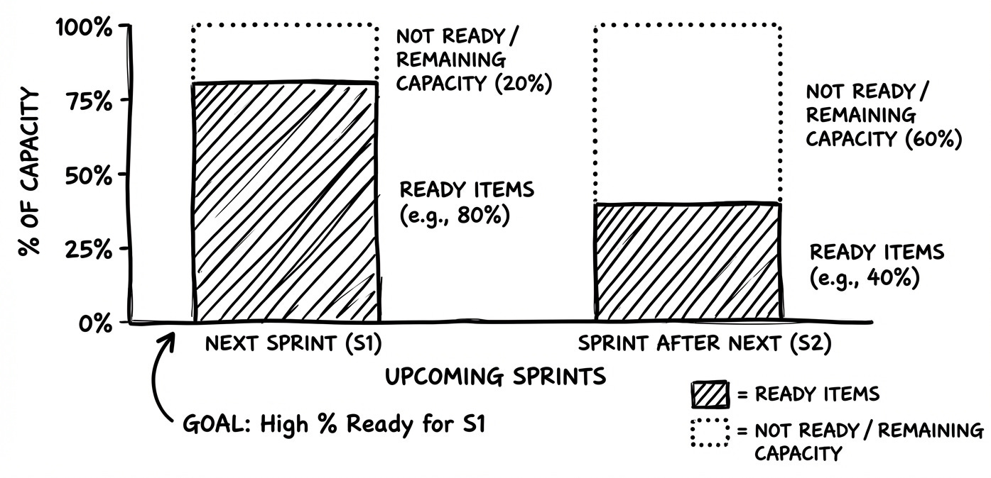 % of items (out of team’s capacity) for the next 1–2 sprints that meet a clear “Ready” checklist