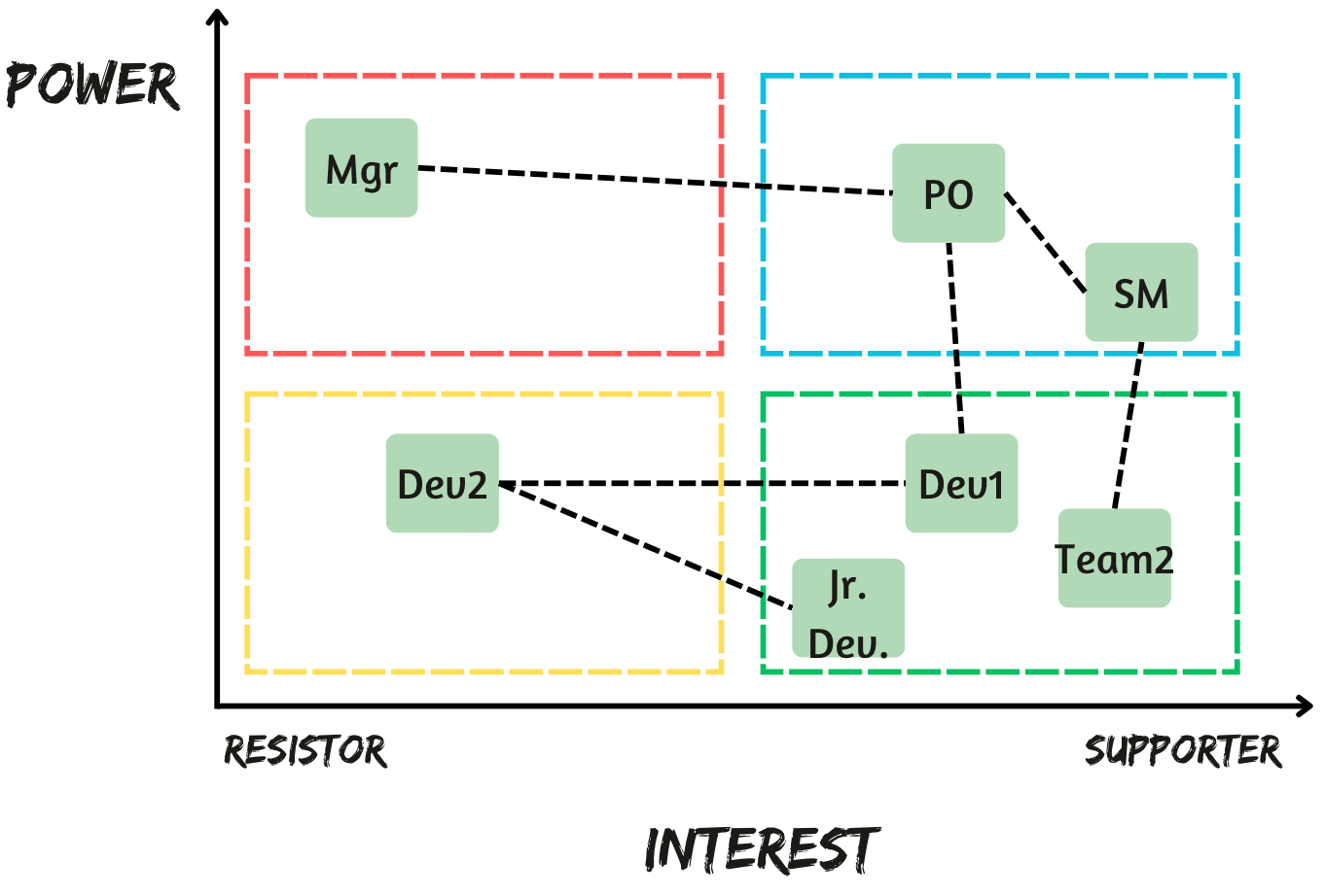 Group them based on their influence (power) and their interest in supporting you. This will pinpoint where to concentrate your efforts.