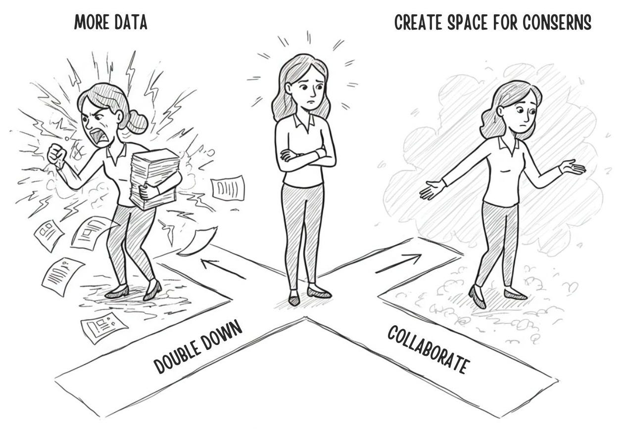 Path 1: Double down with data. Talk louder. Push harder. Defend every detail.