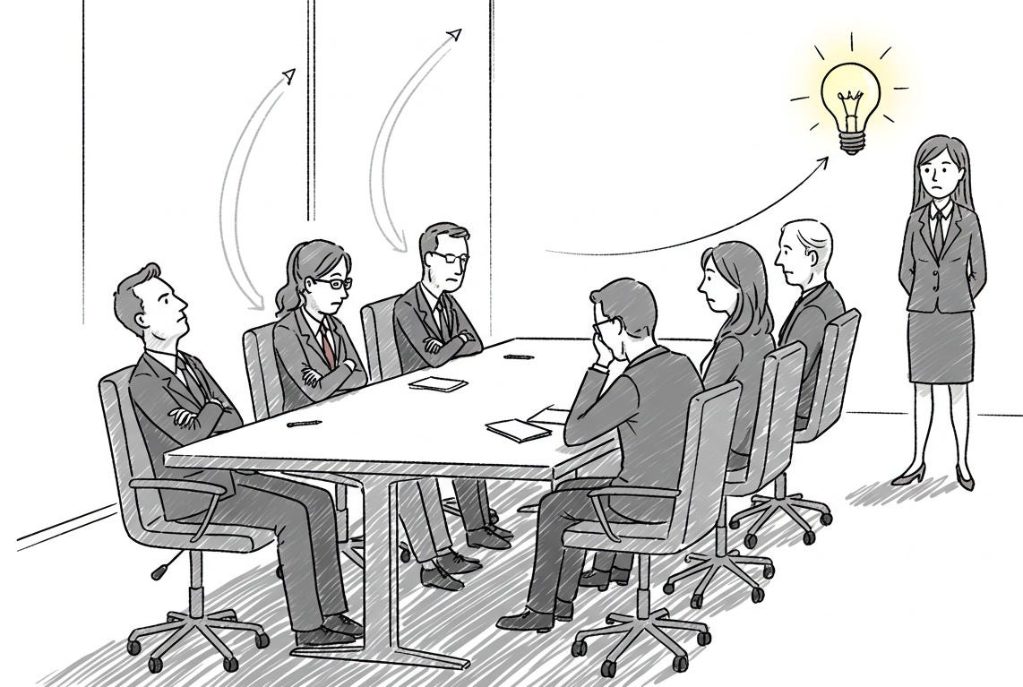 A junior manager — new to the company, still earning her credibility — walked into this meeting with a proposal that threatened the status quo.