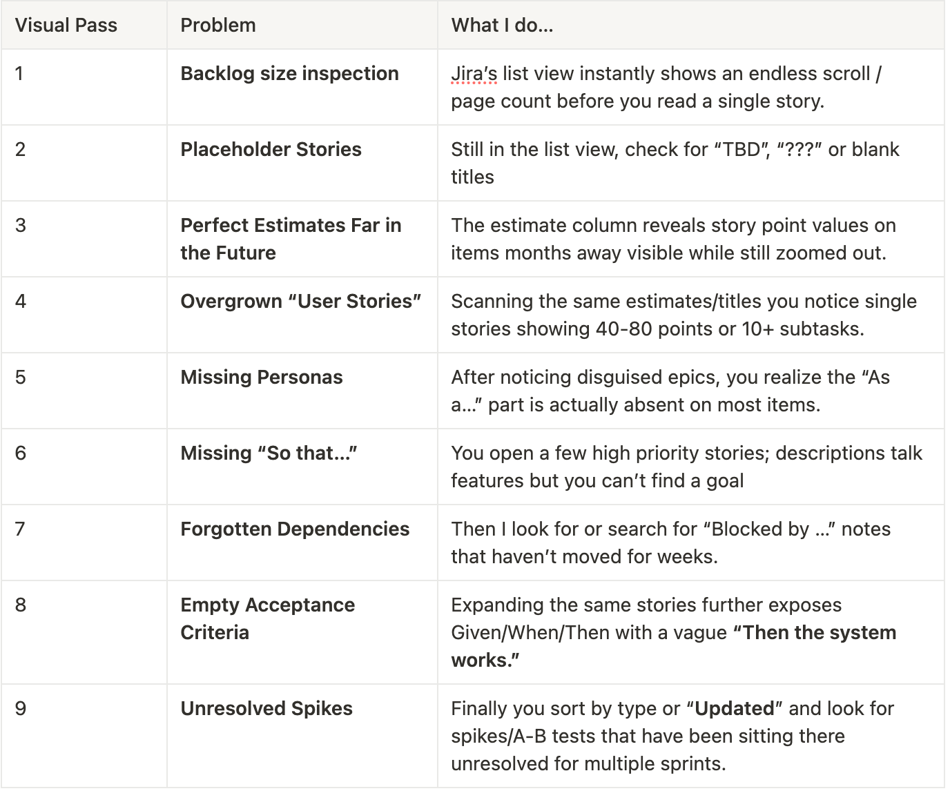 Just last week, I reviewed a team’s backlog that initially appeared clean and healthy. It was well-organized, detailed, and looked like a Product Owner’s dream setup. But within 5 minutes, I spotted 9 issues.