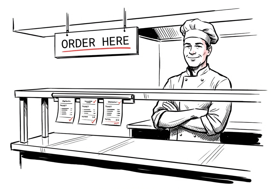 You don’t walk into the kitchen and tap the chef on the shoulder. There’s a system. You sit, you order, the order enters a queue, and the food arrives. It is predictable and reliable.