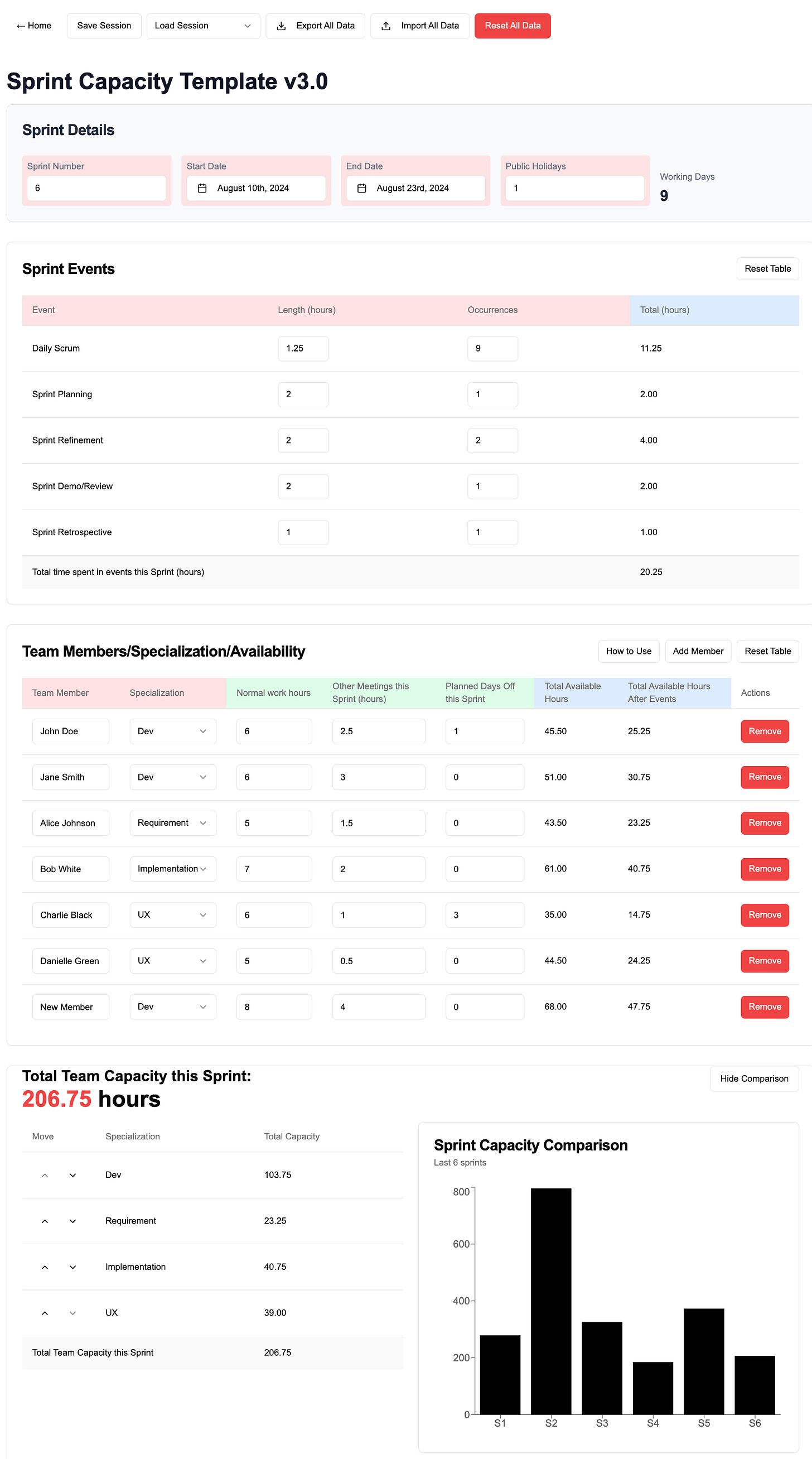 Record, Save and Compare Your Team's Current Sprint Capacity With Other Sprints