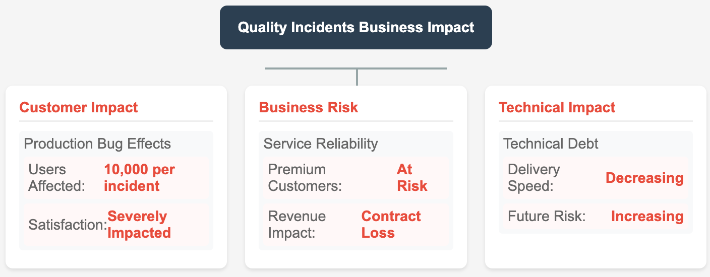 - Technical debt accumulated, threatening future delivery speed“When I explained how these bugs and downtime were eroding customer trust, I could see the concern on their faces,”