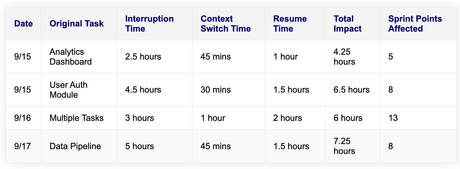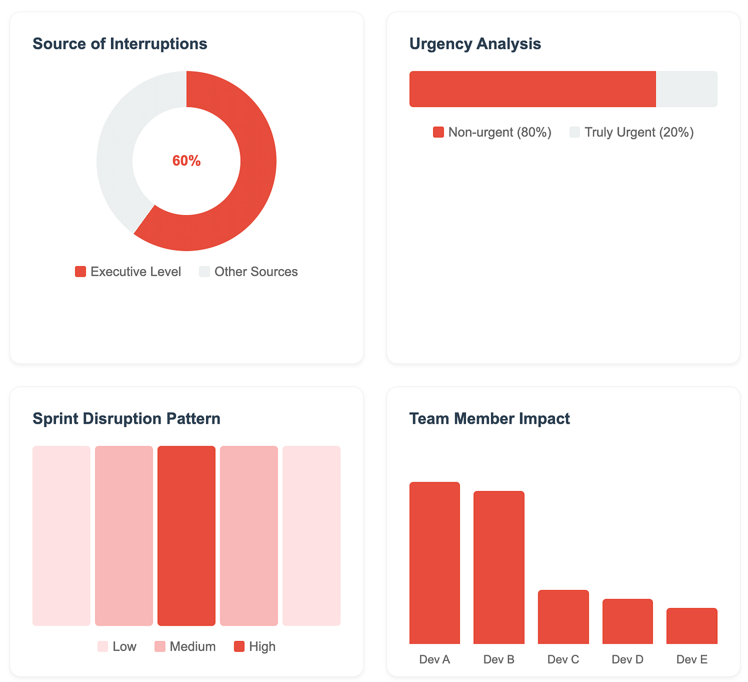 By the end of the two-week assessment, Aman had a solid picture of the problem. The data painted a compelling story of how unplanned interruptions were eroding her team’s efficiency.