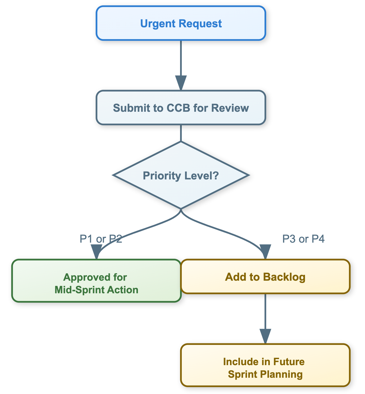 Only P1 and P2 requests (based on predefined criteria) were approved for mid-sprint action